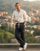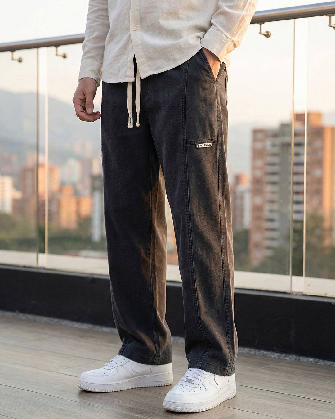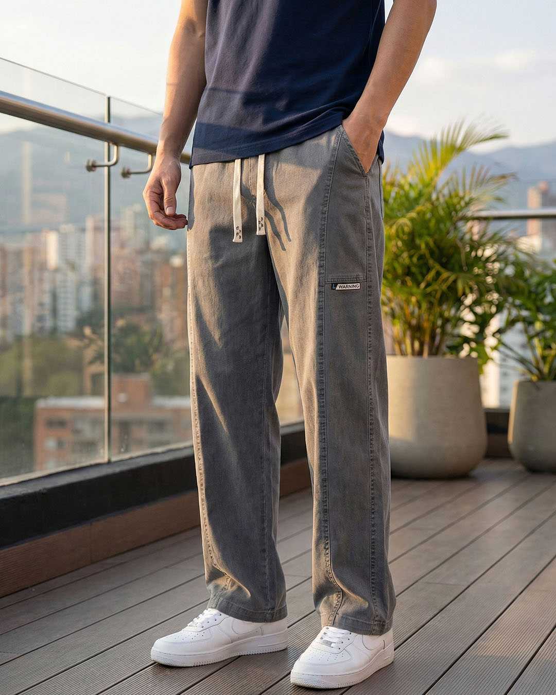 El Pantalón Korso redefine el uso diario fusionando la estética del denim lavado con la libertad de un jogger. Confeccionado con un 76% de Lyocell, ofrece un tacto increíblemente suave y fresco, superior a cualquier jean tradicional. Su silueta recta y amplia disimula el volumen de las piernas mientras que las líneas verticales estilizan tu estatura. Incluye detalles urbanos únicos como la etiqueta 'WARNING' y una cintura ajustable para un confort absoluto.