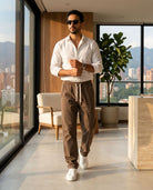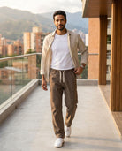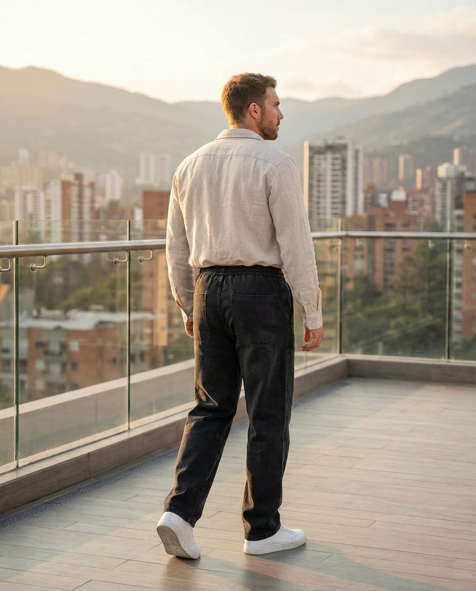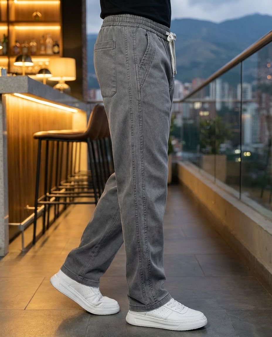 El Pantalón Rivo es la solución para quienes odian la incomodidad de los pantalones formales pero no quieren vestir de sudadera. Confeccionado en 'la tela que respira' (Lyocell de origen vegetal), ofrece una caída suave y elegante con una ligereza excepcional. Gracias a su tratamiento antiestático y antiarrugas, el Rivo se mantiene impecable desde la oficina hasta una cena en la noche, garantizando libertad de movimiento total con su cintura elástica y fit recto-ancho.
