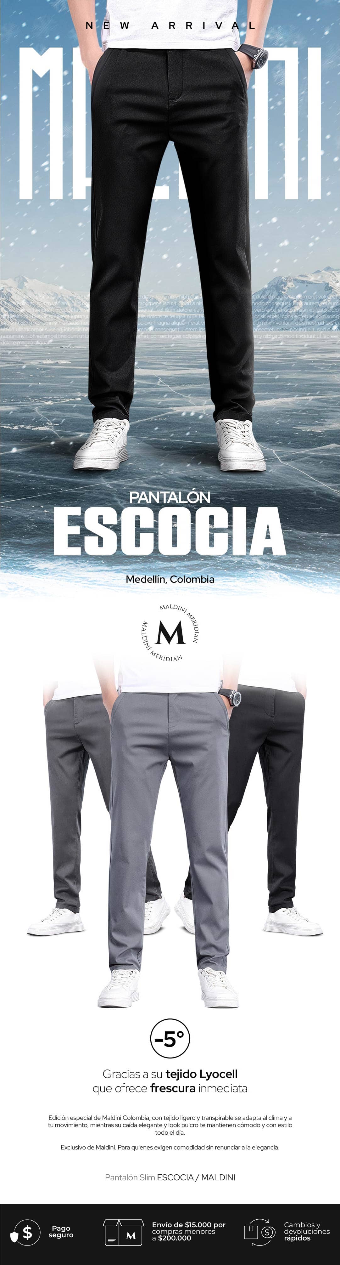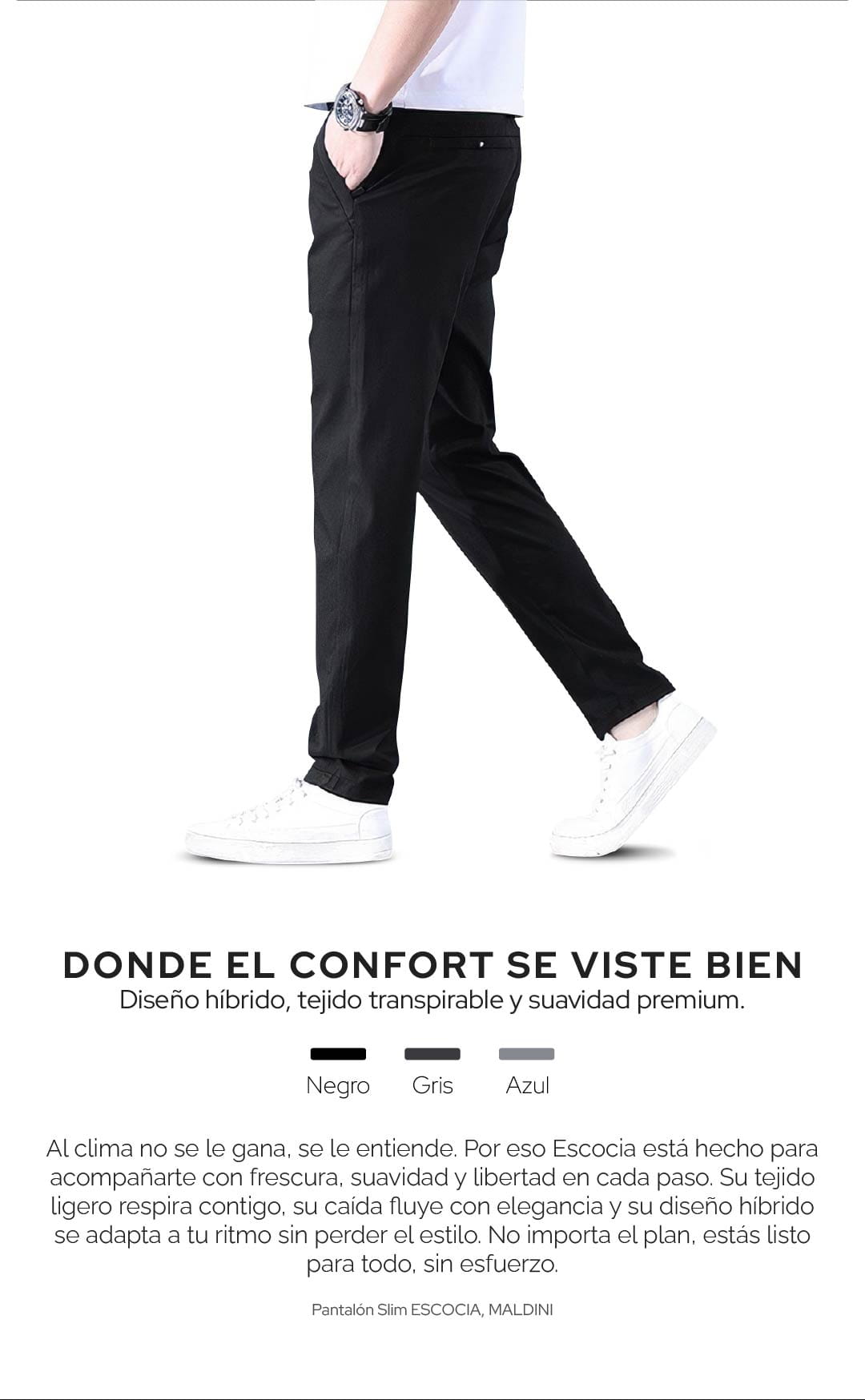 El Pantalón para hombre elástico y ultra cómodo Escocia está confeccionado con tela de Lyocell de brillo natural que aporta suavidad y frescura excepcionales. Su tecnología de enfriamiento equilibra la temperatura corporal, absorbiendo y liberando la humedad para mantenerte cómodo en todo momento.
